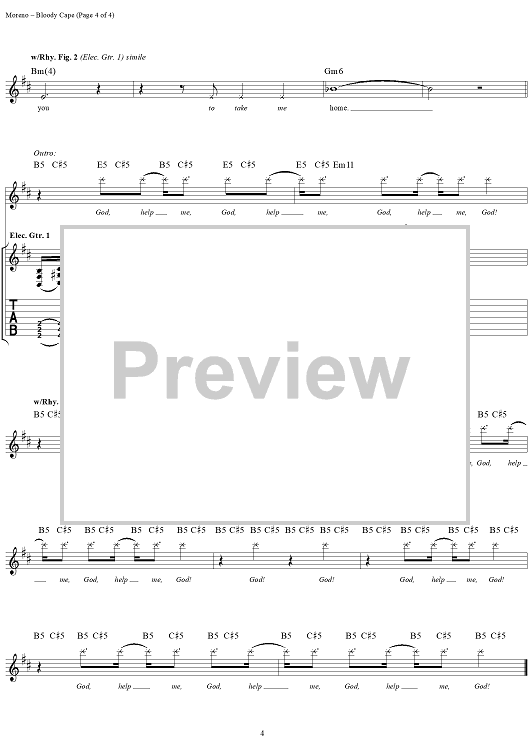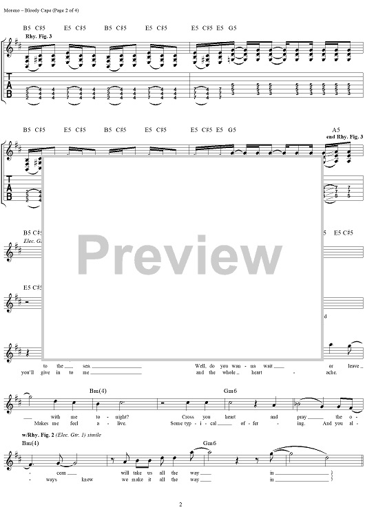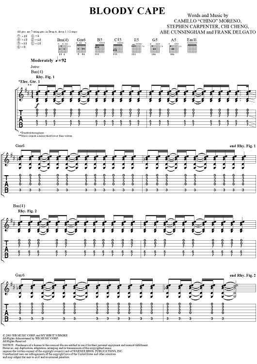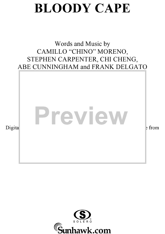 Digital Sheet Music for Bloody Cape by Deftones, Chino Moreno, Chi Cheng, Abe Cunningham, Frank Delgato scored for Guitar Tab/Vocal; id:303039
