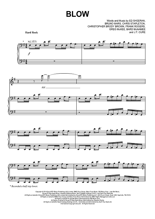Digital Sheet Music for Blow by Frank Rogers, Chris Stapleton, Bruno Mars, Ed Sheeran, Greg McKee, Bard McNamee, J. T. Cure scored for Piano/Vocal/Chords; id:467680
