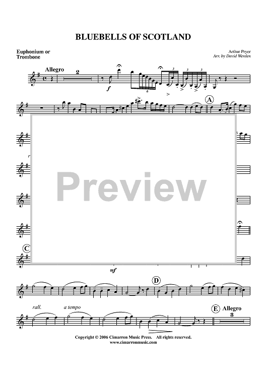 "Blue Bells of Scotland - Trombone" Sheet Music by Arthur Pryor