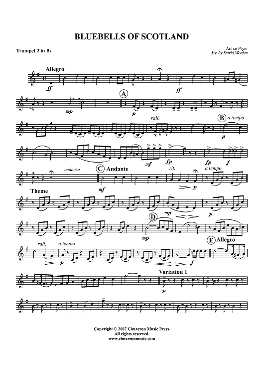 "Blue Bells of Scotland - Trumpet 2 in B-flat" Sheet Music by Arthur Pryor