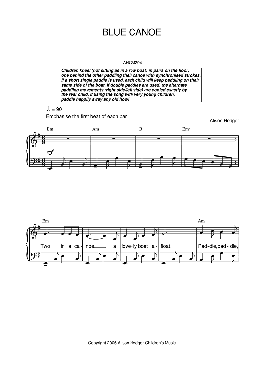 Digital Sheet Music for Blue Canoe by Alison Hedger scored for Piano/Vocal/Chords; id:391571