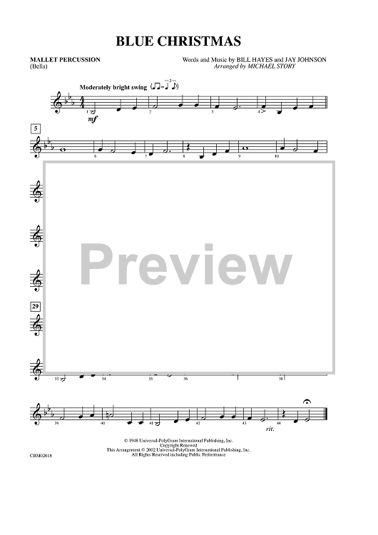 Digital Sheet Music for Blue Christmas - Mallet Percussion by Billy Hayes, Jay Johnson, Michael Story scored for Concert Band; id:314270