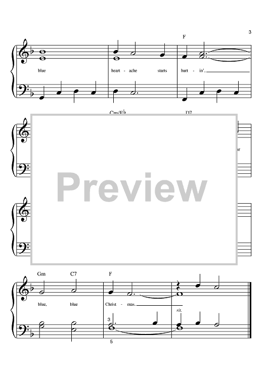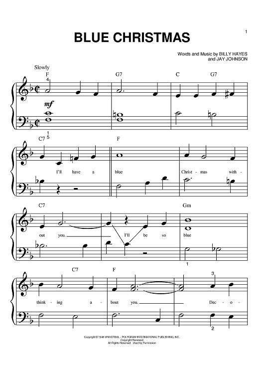 Digital Sheet Music for Blue Christmas by The Beach Boys, Johnny Cash, Elvis Presley, Billy Hayes, Jay Johnson scored for Big Note Piano; id:374913