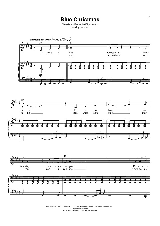 Digital Sheet Music for Blue Christmas by Elvis Presley, Billy Hayes, Jay Johnson scored for Piano/Vocal/Chords; id:398592