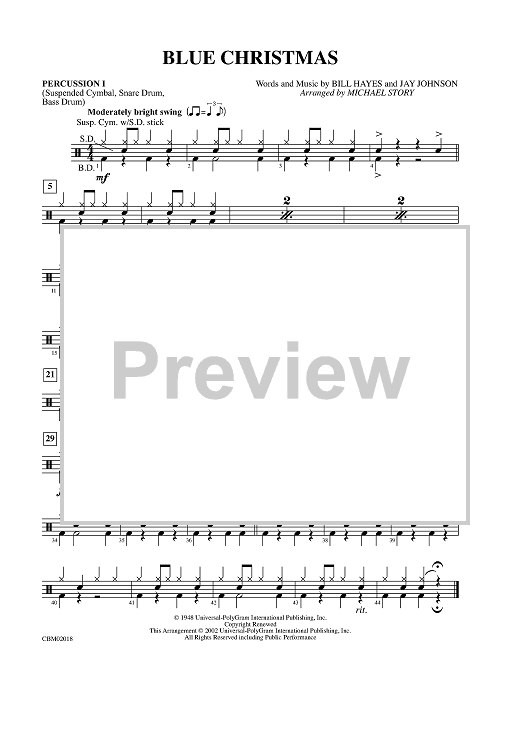 "Blue Christmas - Percussion 1" Sheet Music by Billy Hayes