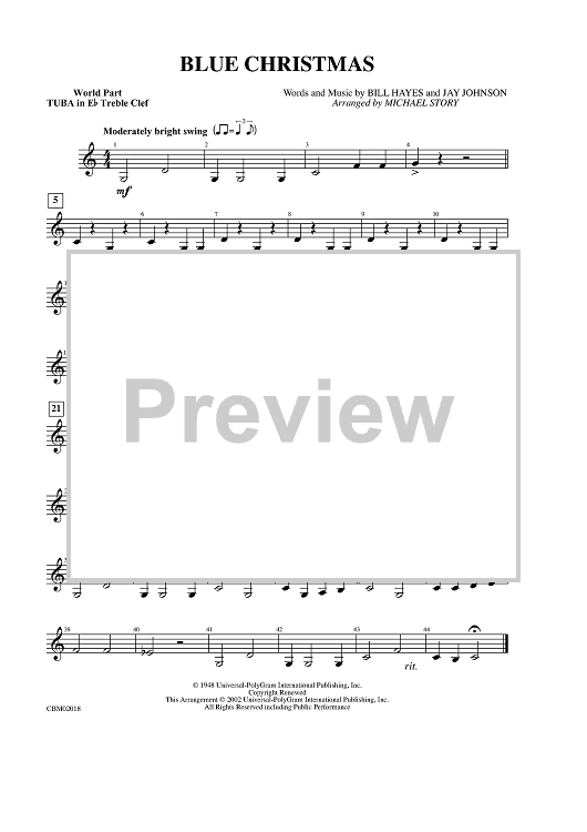 "Blue Christmas - Tuba in E-flat TC" Sheet Music by Billy Hayes