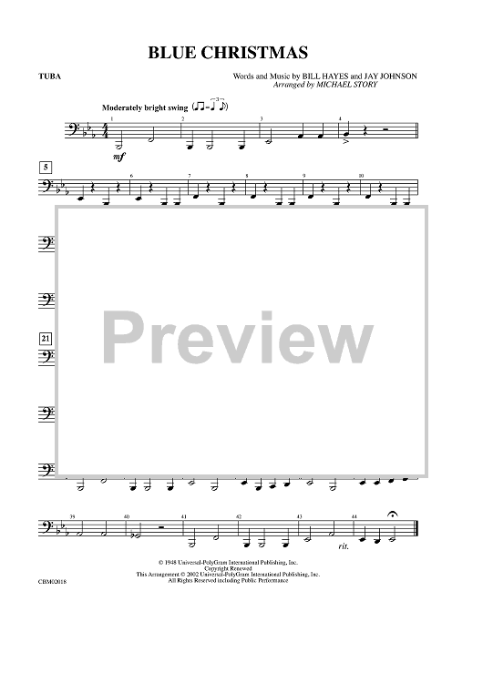 "Blue Christmas - Tuba" Sheet Music by Billy Hayes