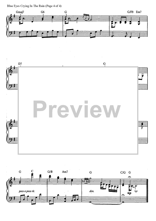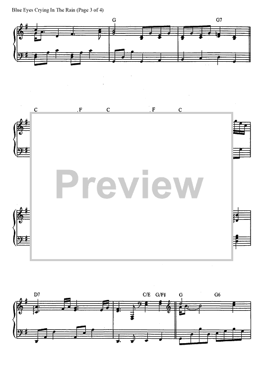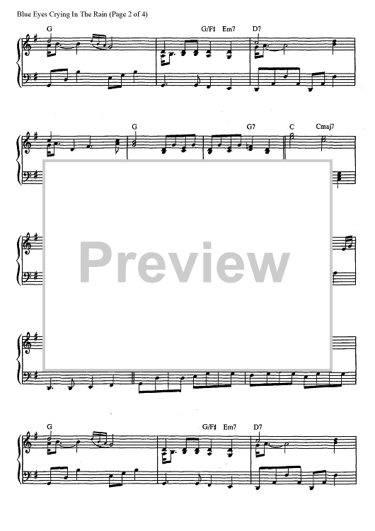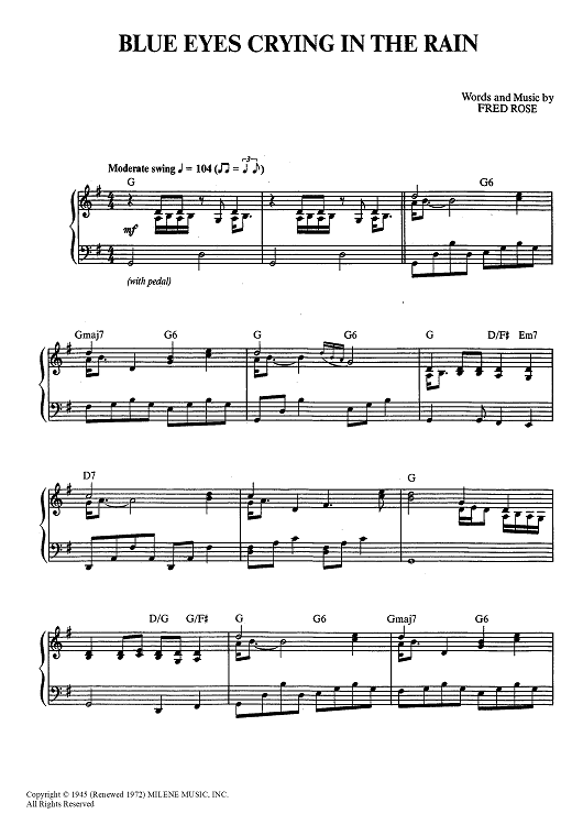 Digital Sheet Music for Blue Eyes Crying In The Rain by Fred Rose, Floyd Cramer scored for Piano Solo; id:458171
