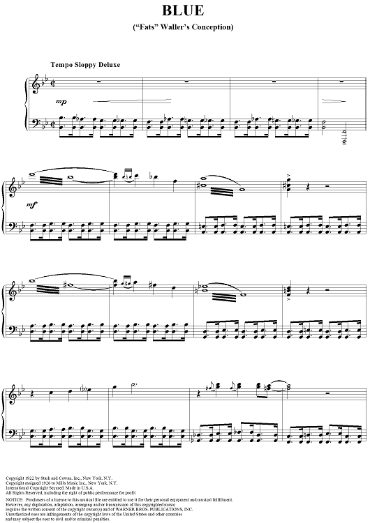 "Blue ("Fats" Waller's Conception)" Sheet Music by Fats Waller