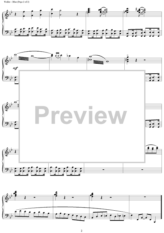 Digital Sheet Music for Blue ("Fats" Waller's Conception) by Fats Waller scored for Piano Solo; id:313651