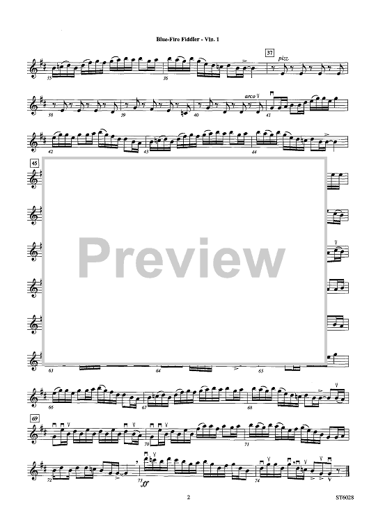 Digital Sheet Music for Blue-Fire Fiddler - Violin 1 by Soon Hee Newbold scored for String Orchestra; id:441152