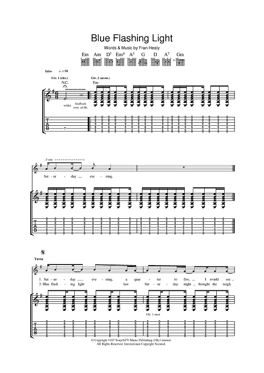 Digital Sheet Music for Blue Flashing Light by Fran Healy, Travis scored for Guitar Tab; id:393613