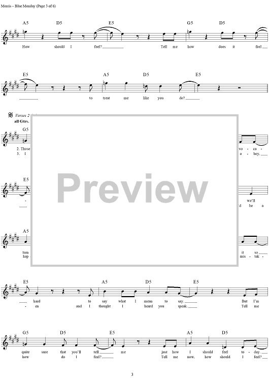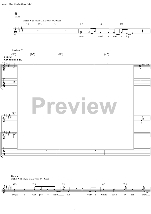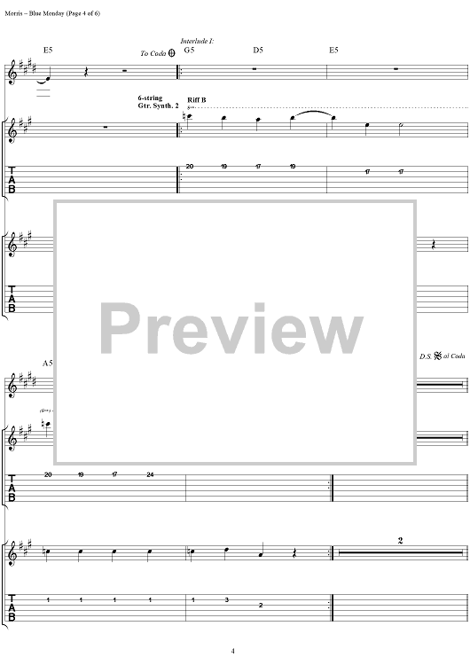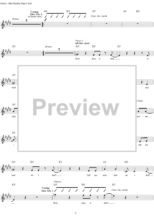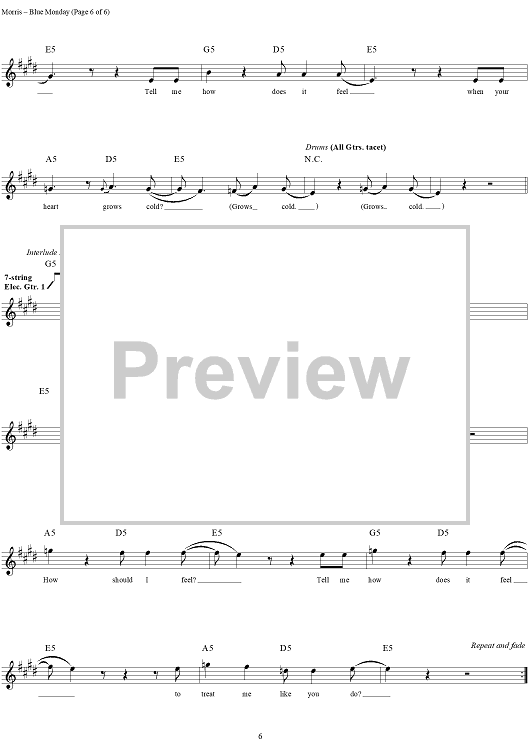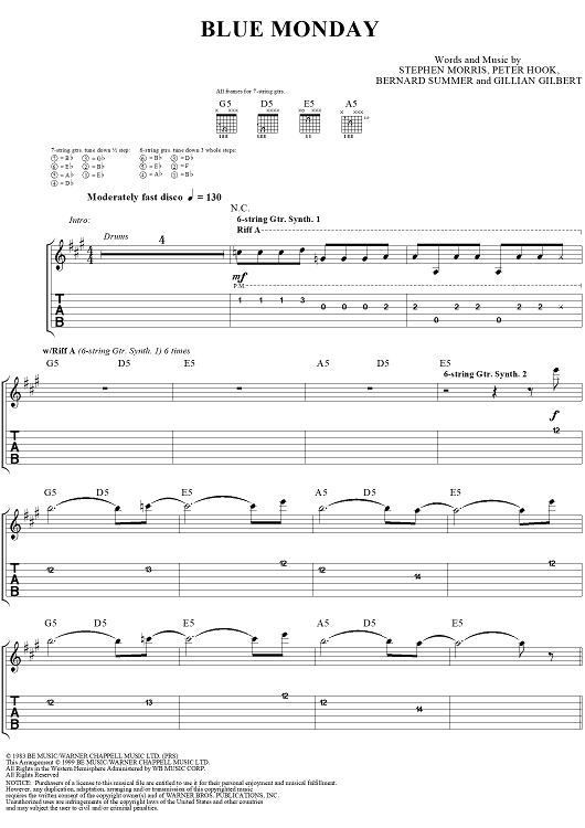 Digital Sheet Music for Blue Monday by New Order, Stephen Morris, Peter Hook, Gillian Gilbert, Orgy, Bernard Summer scored for Guitar Tab/Vocal; id:186249
