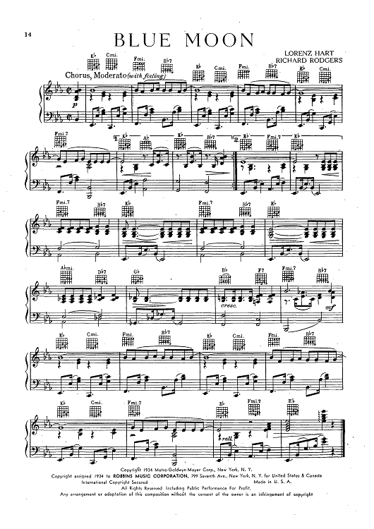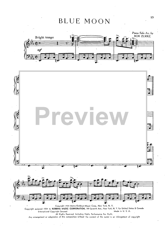 Digital Sheet Music for Blue Moon by Richard Rodgers, Lorenz Hart, Bob Zurke scored for Piano Solo; id:423055