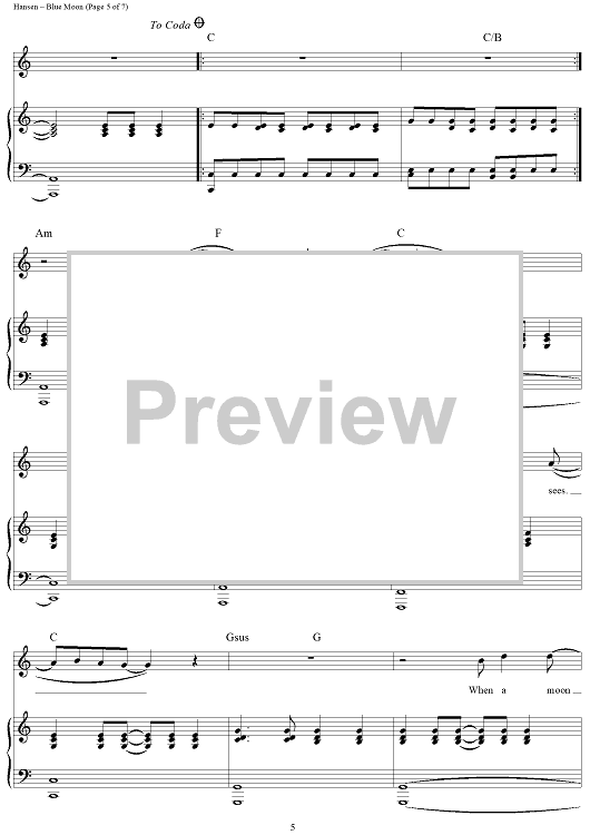 Digital Sheet Music for Blue Moon by Beck Hansen, Beck scored for Piano/Vocal/Chords; id:448095