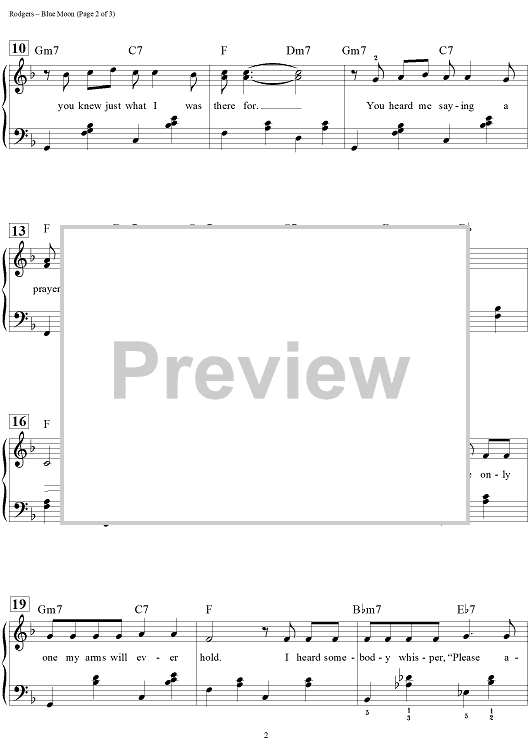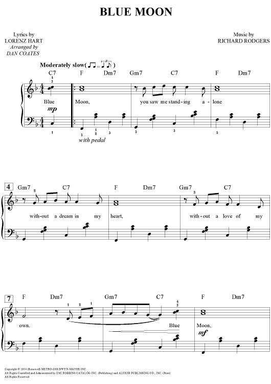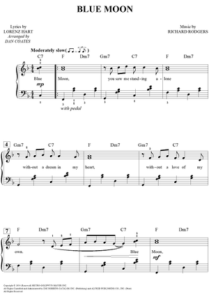 Digital Sheet Music for Blue Moon by Dan Coates, Richard Rodgers, Lorenz Hart scored for Easy Piano/Vocal; id:456660