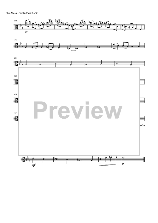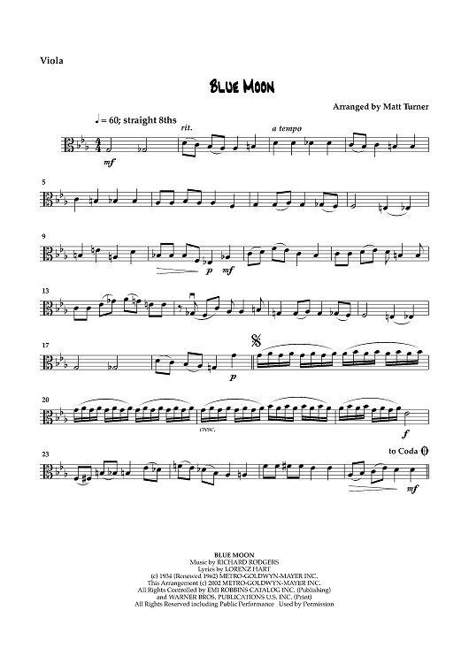 "Blue Moon - Viola" Sheet Music by Richard Rodgers