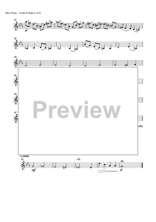 "Blue Moon - Violin 2" Sheet Music by Richard Rodgers
