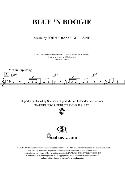 "Blue 'n Boogie" Sheet Music by Dizzy Gillespie