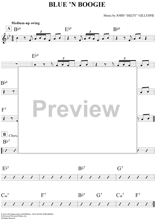 Digital Sheet Music for Blue 'n Boogie by Dizzy Gillespie scored for Lead Sheet; id:287648