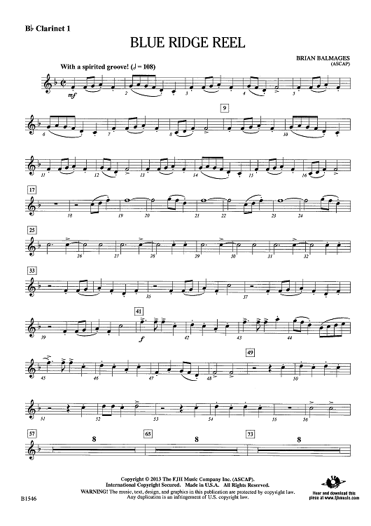 Digital Sheet Music for Blue Ridge Reel - Bb Clarinet 1 by Brian Balmages scored for Concert Band; id:439076