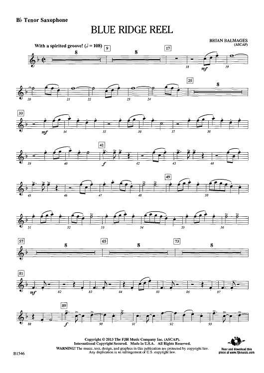 "Blue Ridge Reel - Bb Tenor Sax" Sheet Music by Brian Balmages