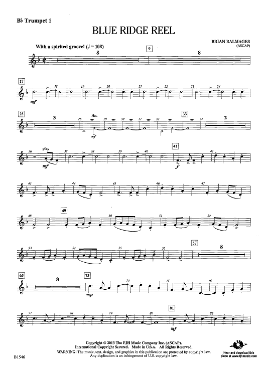 "Blue Ridge Reel - Bb Trumpet 1" Sheet Music by Brian Balmages