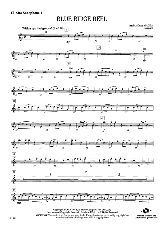 Digital Sheet Music for Blue Ridge Reel - Eb Alto Sax 1 by Brian Balmages scored for Concert Band; id:439079