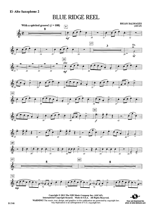 "Blue Ridge Reel - Eb Alto Sax 2" Sheet Music by Brian Balmages