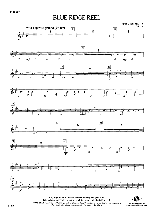 Digital Sheet Music for Blue Ridge Reel - F Horn by Brian Balmages scored for Concert Band; id:439085