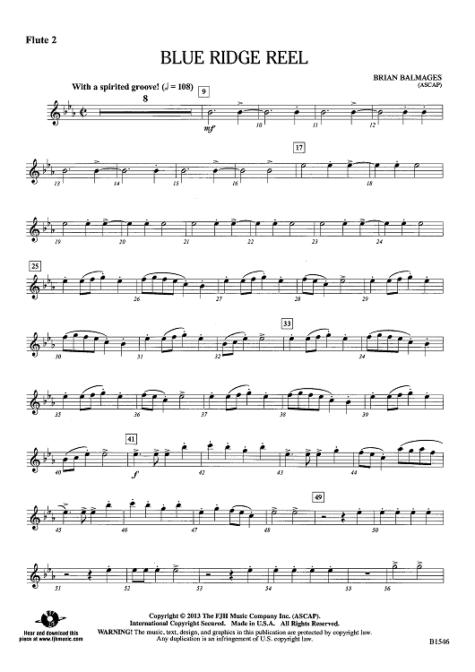 Digital Sheet Music for Blue Ridge Reel - Flute 2 by Brian Balmages scored for Concert Band; id:439073