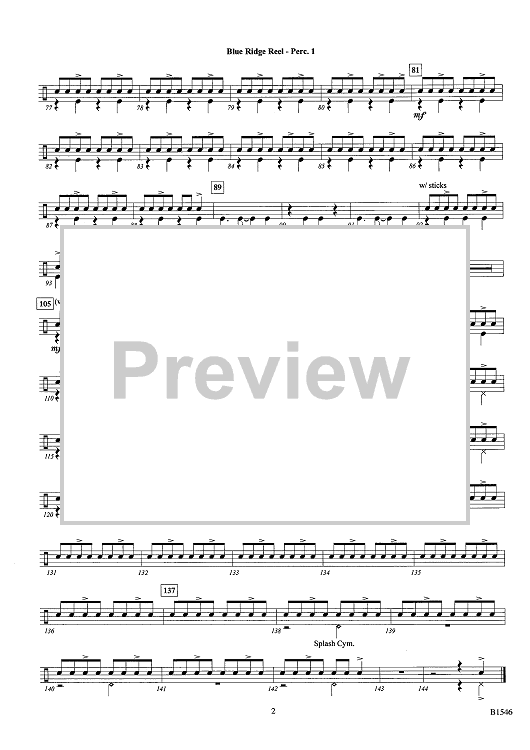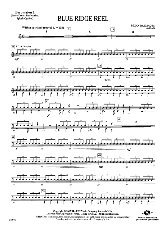 "Blue Ridge Reel - Percussion 1" Sheet Music by Brian Balmages