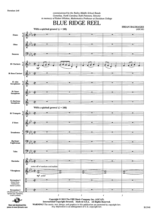 Digital Sheet Music for Blue Ridge Reel - Score by Brian Balmages scored for Concert Band; id:439070