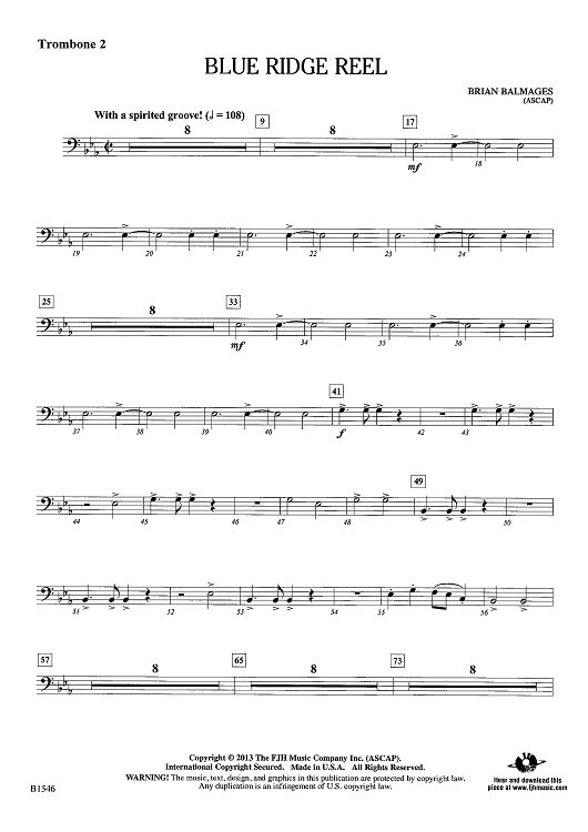 "Blue Ridge Reel - Trombone 2" Sheet Music by Brian Balmages
