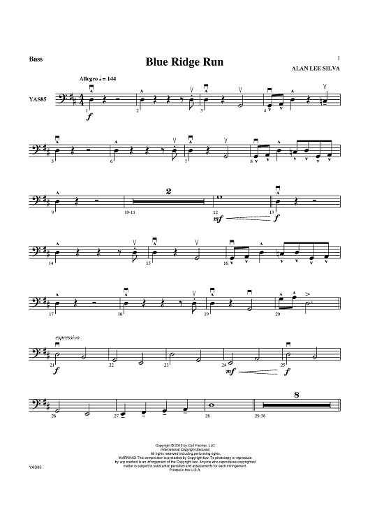 "Blue Ridge Run - Bass" Sheet Music by Alan Lee Silva