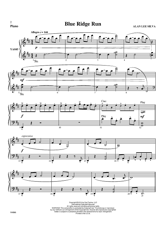 "Blue Ridge Run - Piano" Sheet Music by Alan Lee Silva