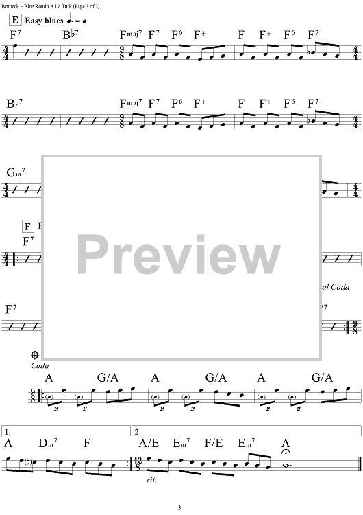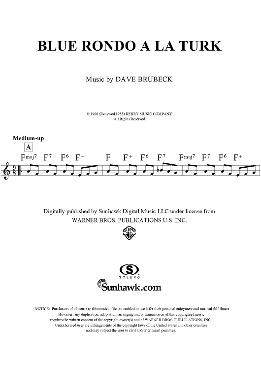 Digital Sheet Music for Blue Rondo a la Turk by Dave Brubeck scored for Lead Sheet; id:287649