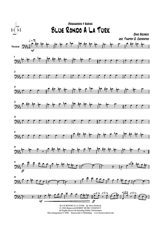 Digital Sheet Music for Blue Rondo A La Turk - Trombone by Dave Brubeck, Timothy Carpenter scored for Brass Quintet; id:410575
