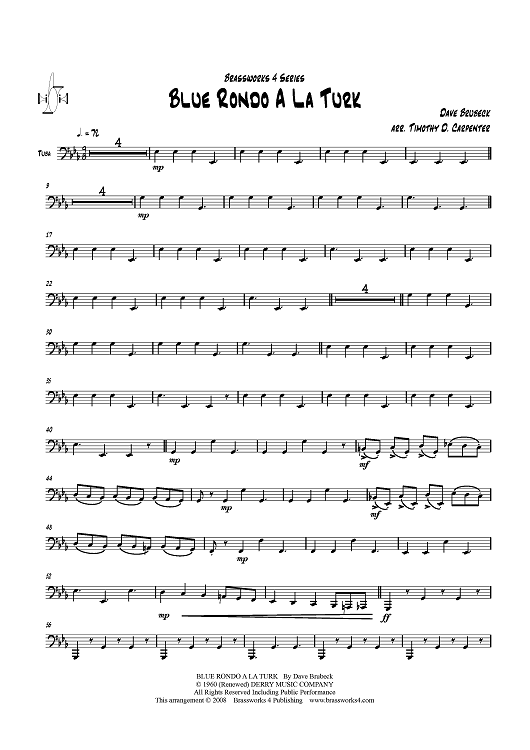 Digital Sheet Music for Blue Rondo A La Turk - Tuba by Dave Brubeck, Timothy Carpenter scored for Brass Quintet; id:410576