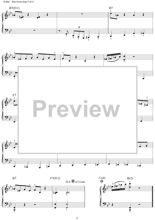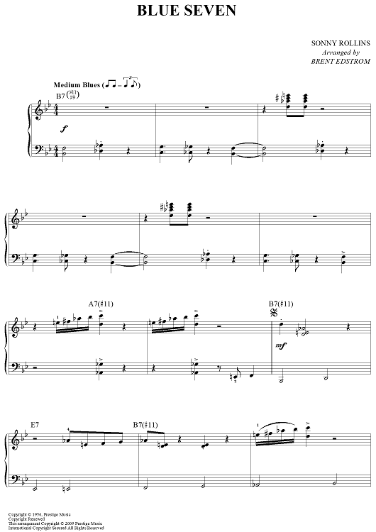 Digital Sheet Music for Blue Seven by Sonny Rollins, Brent Edstrom scored for Piano Solo; id:464332
