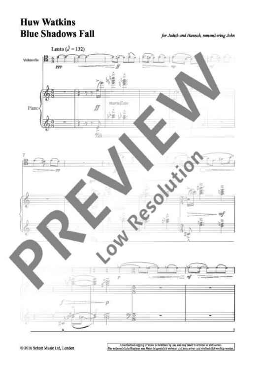 Digital Sheet Music for Blue Shadows Fall by Huw Watkins scored for Cello And Piano; id:490248