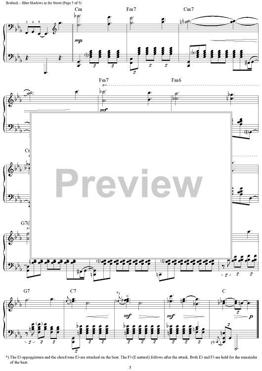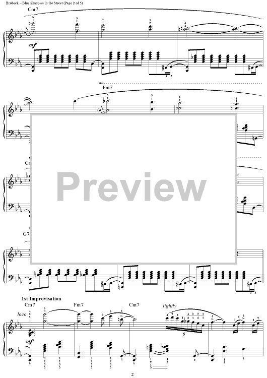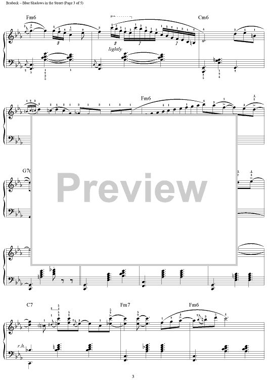 Digital Sheet Music for Blue Shadows in the Street by Dave Brubeck scored for Piano Solo; id:310663
