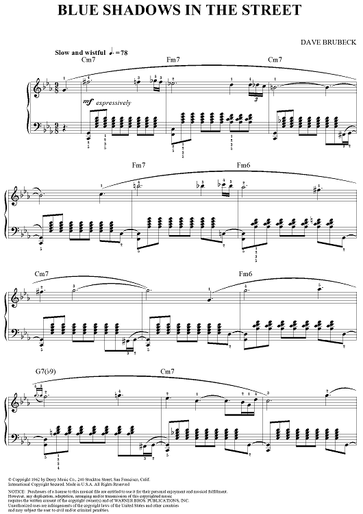 "Blue Shadows in the Street" Sheet Music by Dave Brubeck
