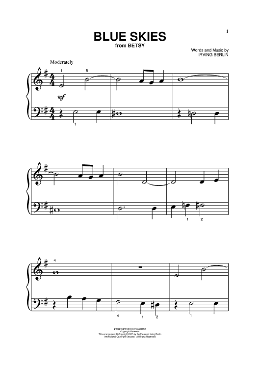 Digital Sheet Music for Blue Skies by Irving Berlin scored for Piano; id:385176