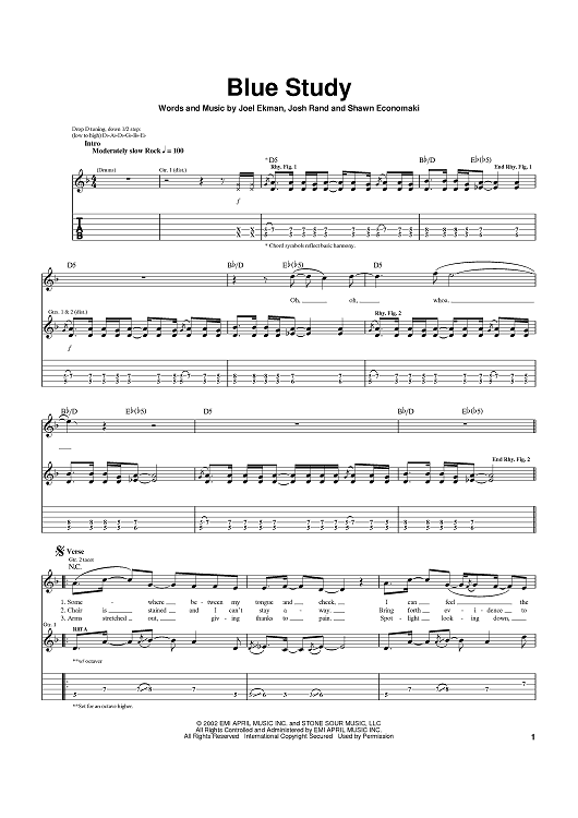 Digital Sheet Music for Blue Study by Shawn Economaki, Joel Ekman, Josh Rand, Stone Sour scored for Guitar Tab; id:370749