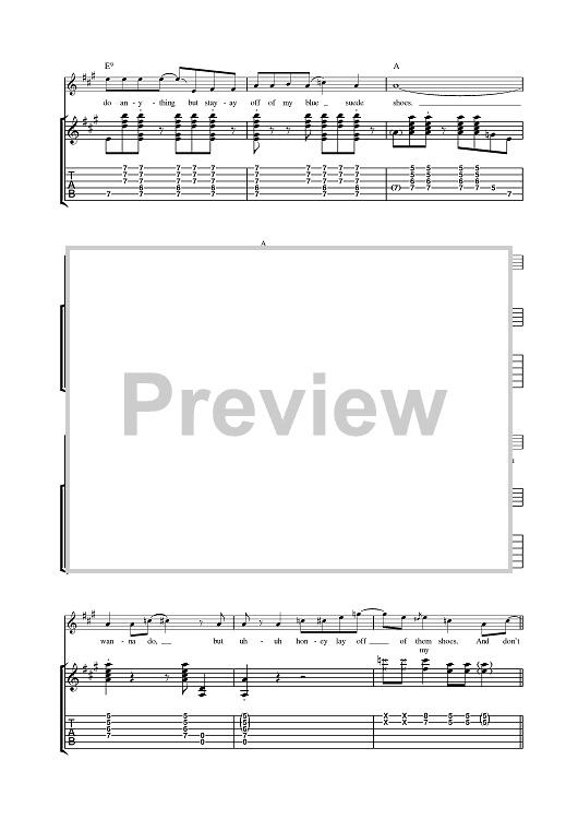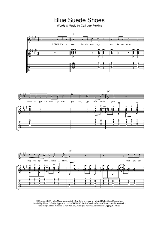 Digital Sheet Music for Blue Suede Shoes by Elvis Presley scored for Guitar Tab; id:378634