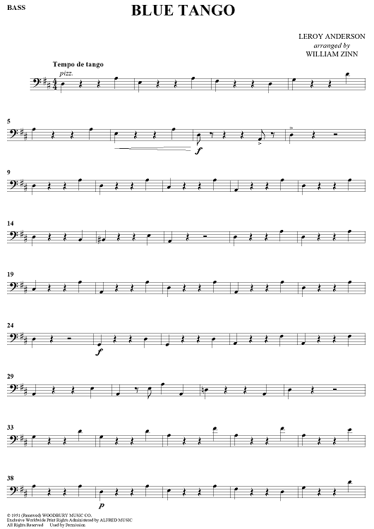 "Blue Tango - Bass" Sheet Music by Leroy Anderson