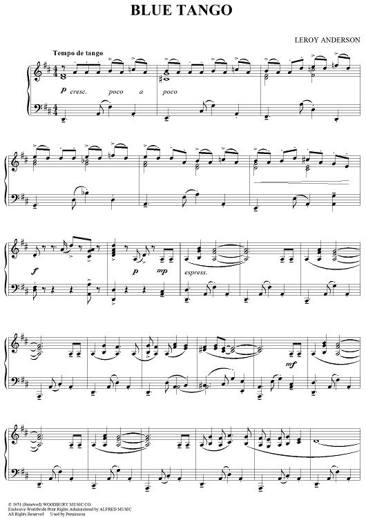 Digital Sheet Music for Blue Tango by Leroy Anderson scored for Piano Solo; id:321697