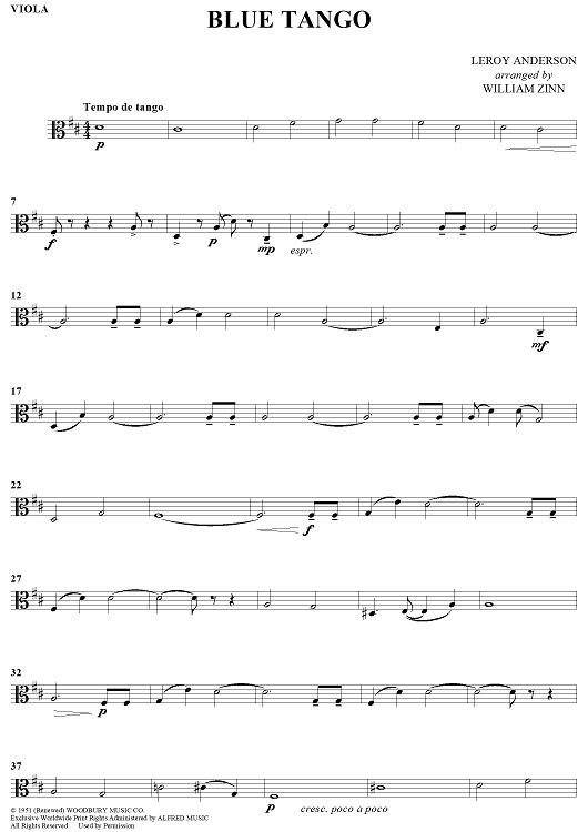 "Blue Tango - Viola" Sheet Music by Leroy Anderson