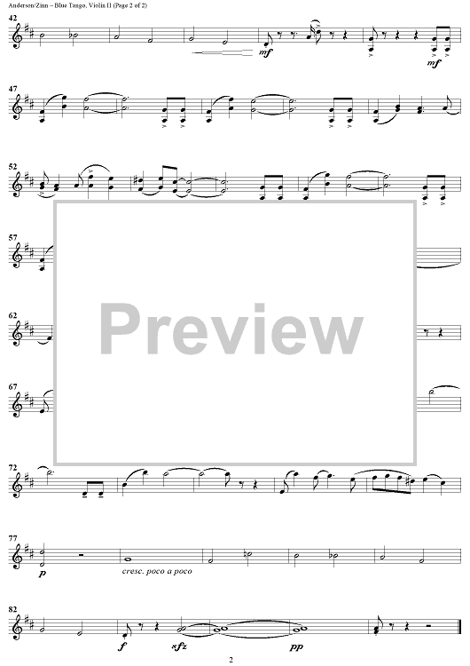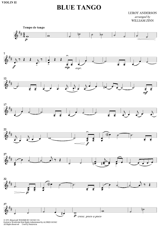 "Blue Tango - Violin 2" Sheet Music by Leroy Anderson